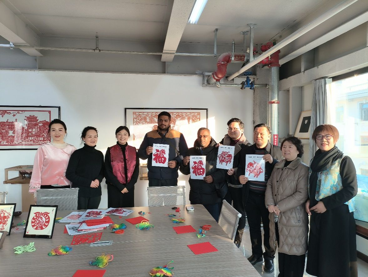 在人居工程学院非遗传承学院和技能大师工作室,师生为代表团展示了学校在建筑与生活环境设计方面的教学成果,并特意安排了一场富有中国传统文化意蕴的体验活动。马来西亚嘉宾品鉴了师生准备的特色茶饮,并近距离观摩了非遗剪纸和陶艺课程的现场创作。代表团对精湛的传统技艺表现出浓厚的兴趣,不时与师生交流互动,现场气氛热烈融洽。这一环节生动体现了学校在专业技能教育中融入人文素养培育的教学理念,为未来国际合作增添了丰富文化内涵。